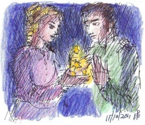 I haven’t drawn at all in the last two years, having been occupied nearly entirely with writing. Time for the Muse to strike like lightning when I’m least prepared (his/her usual modus operandi). Last December, I read the first draft of Emma and the Air Pirates, Devin Hanois’s steampunk romp set in an Alternate-Universe Old West. (For some Six Sentence Sunday snippets, see the author’s website.) There’s a certain scene that just struck me as the core of the book, and therefore the picture that goes on the cover.