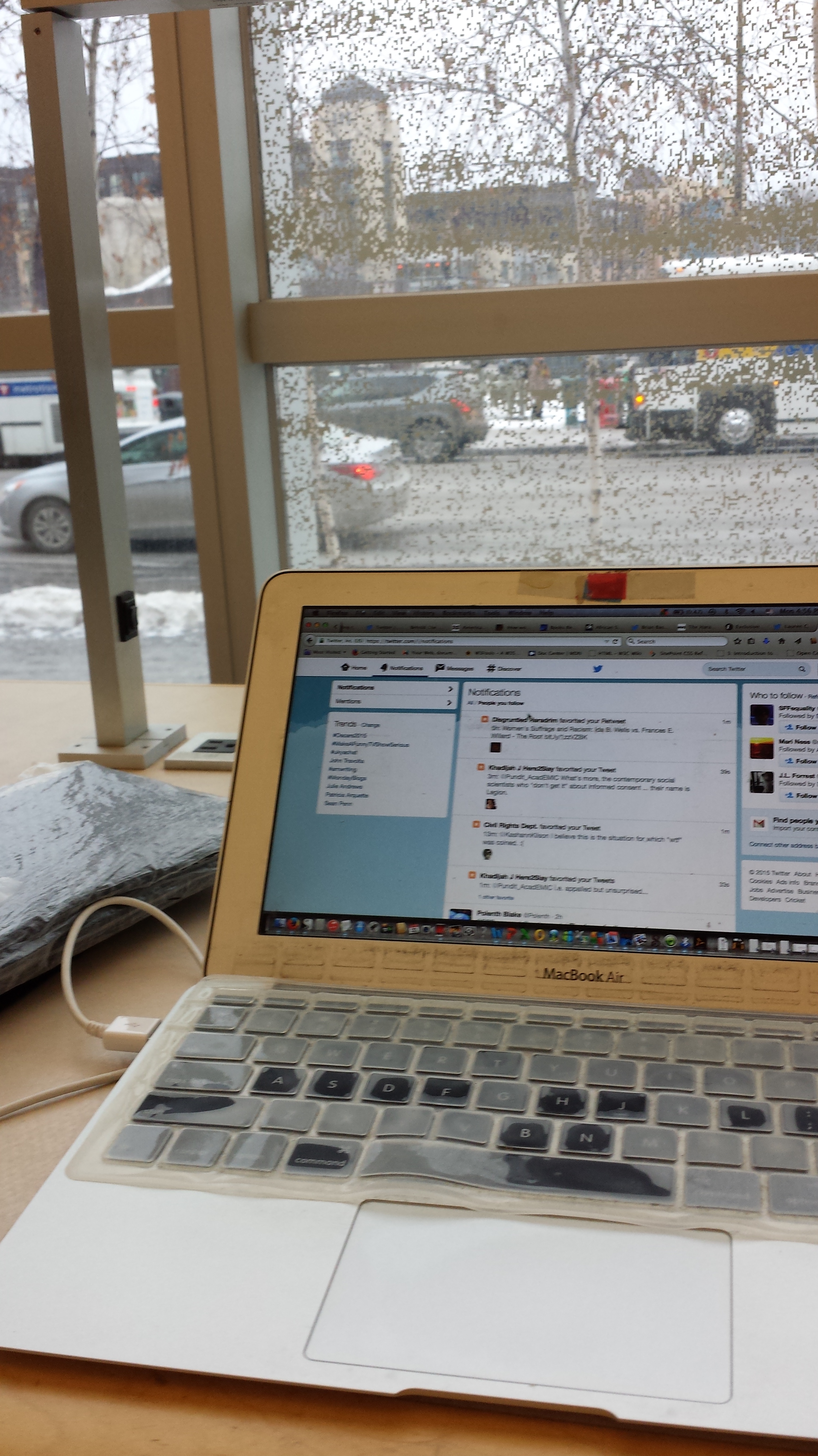 Macbook Air, 2011. Bought this, again under influence of NaNoWriMo, as a platform for the Scrivener software. At that time, this super light weight machine drew my attention for its solid state drive (more temperature and impact resistant than the optical drive on my Dell). Nonetheless I bought it a ton of shock absorbing jackets, a la northern hemisphere toddler bundled for arctic chill.